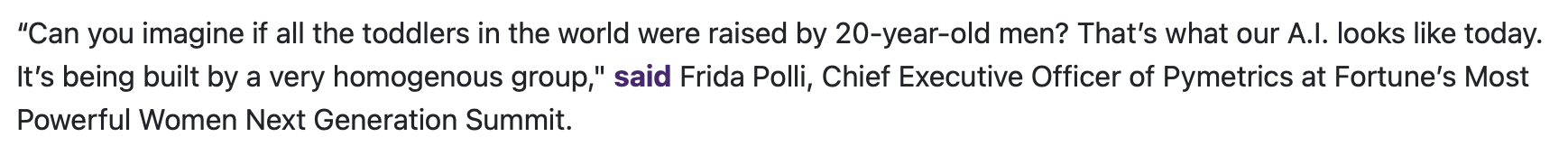 Some of the most profitable companies in the world have, and continue to heavily invest in AI startups. Yet, investors ignore major problems. This isn’t new. Since the dawn of industry, companies have actively alienated potential customer bases. That alienation can exist in many different forms at once: homophobia, sexism, racism, fat-phobia, ableism etc etc. Whether or not you’ve been subject to this targeting is beside the point. It exists, and A.I. has proven no different. The statistics around the A.I. gender gap are FRIGHTENING. You can start reading about them here and here. It is now a fact. A.I. engines exhibit biased results.