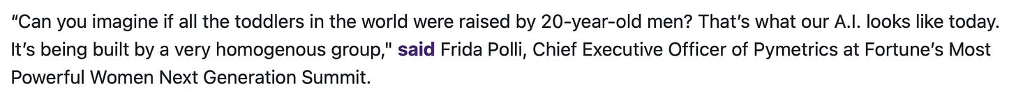 What about the women who are not naturally interested in A.I.? Who do not have hours and hours of free time to spend searching for relevant information? Who see the same sexist images I do and choose not to explore further?